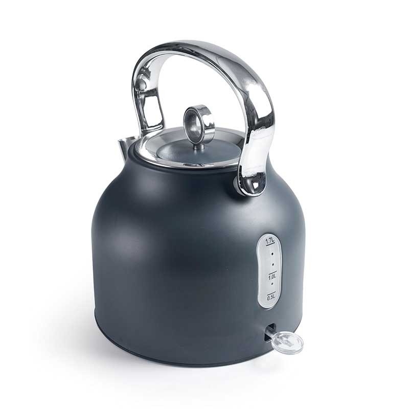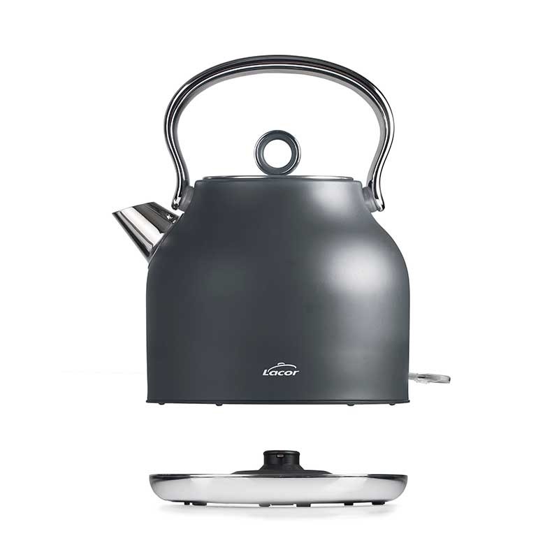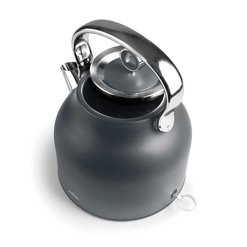 Hervidor de agua eléctrico 2200 W modelo Retro fabricado en acero inoxidable 18/10 y acabado en gris mate.