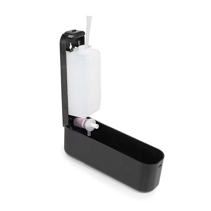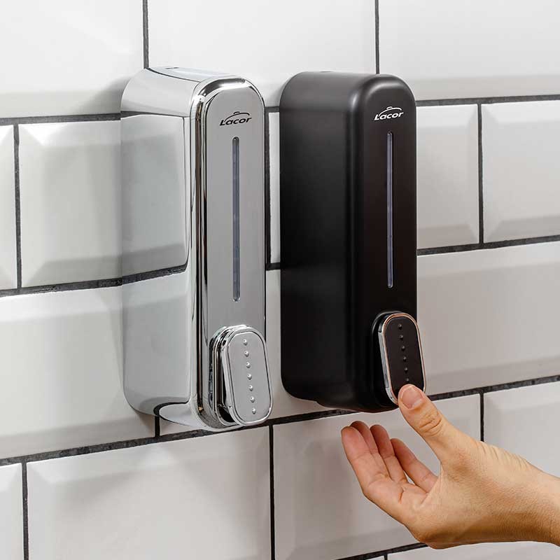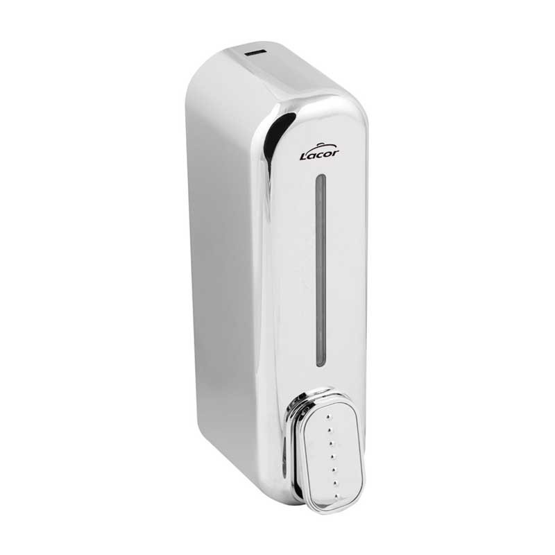 Dispensador de jabón o gel hidroalcohólico fabricado en ABS cromado con depósito de polietileno de 350 ml de capacidad.