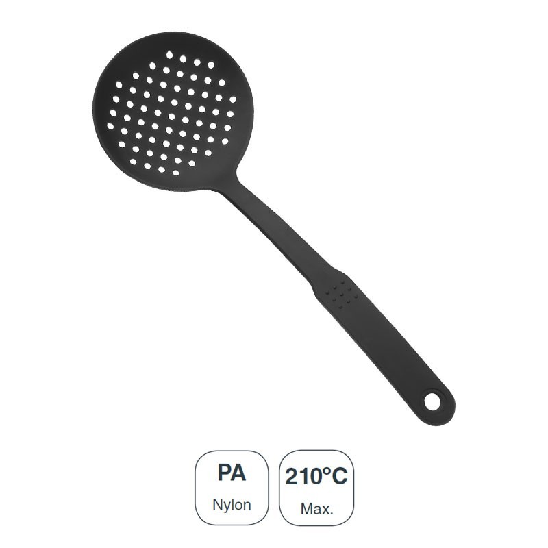 Espumadera para cocina de la Serie Black fabricada en nylon para temperaturas de cocinado de hasta 210ºC. Medidas: 33x11x6 cm.