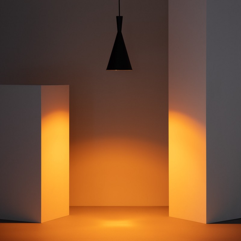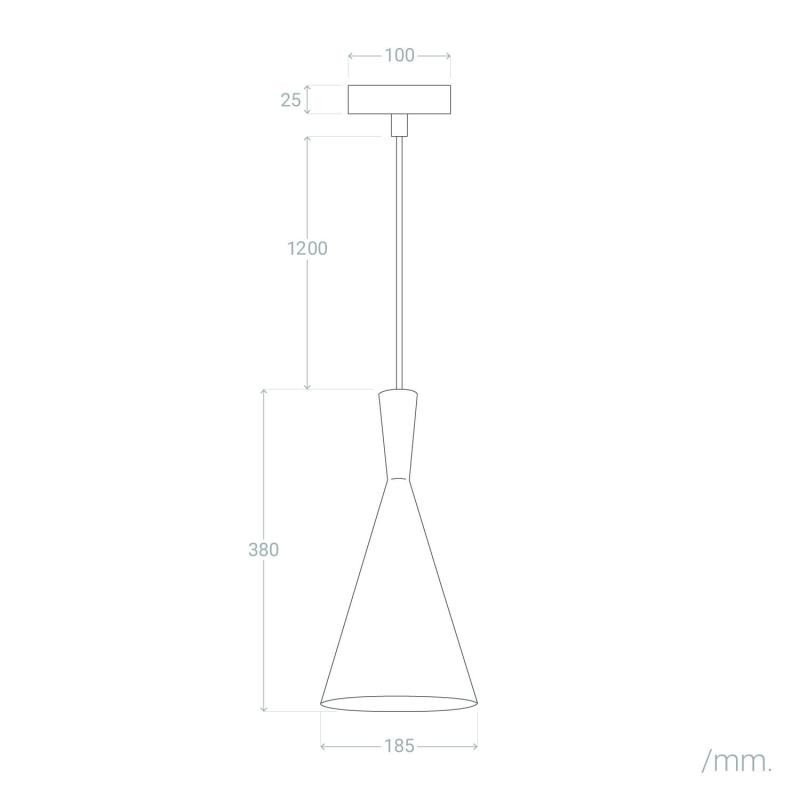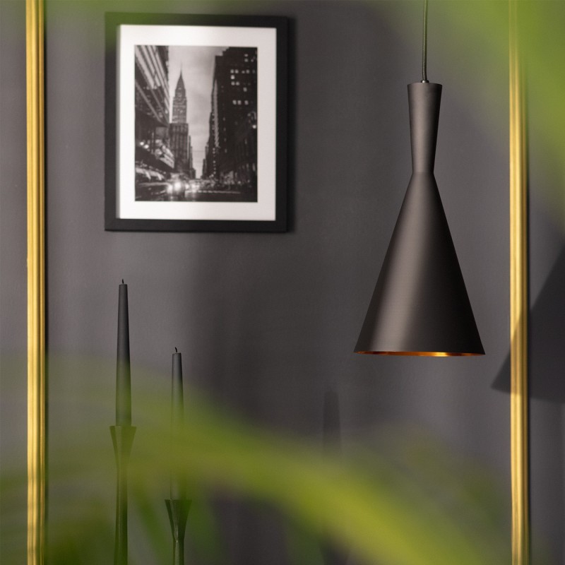 La lámpara colgante metal Lennon se distingue por su diseño característico en forma de cono.