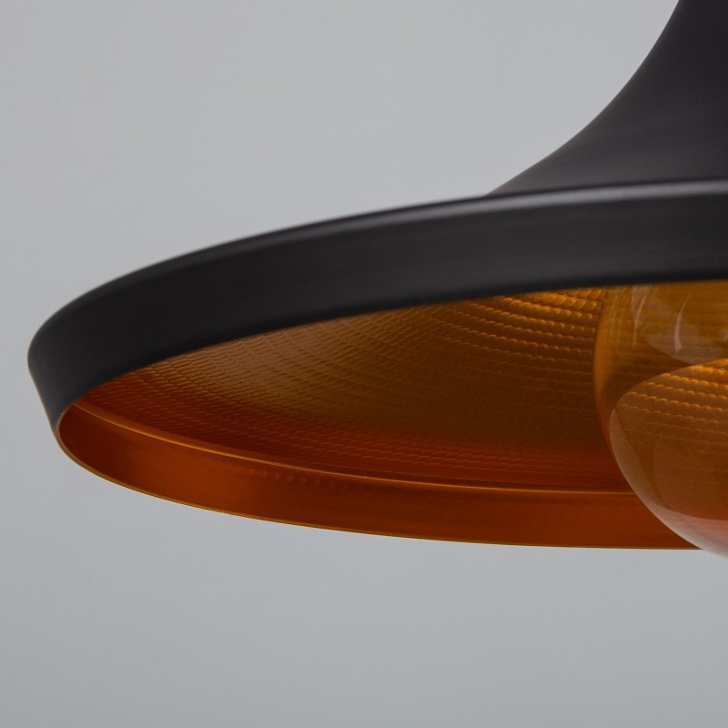 Si buscas un elemento de iluminación que llame la atención, la lámpara colgante Presley es una opción fascinante. Su aspecto peculiar asegura que destacará en cualquier espacio donde la instales. Fabricada con aluminio de alta calidad, está disponible en dos acabados: negro y dorado.