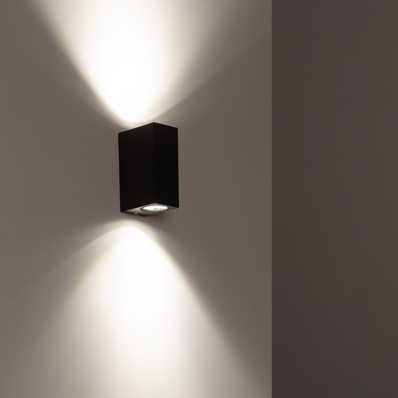 El aplique de pared exterior aluminio iluminación doble cara Miseno negro es resistente al polvo y a las salpicaduras gracias a su factor de protección IP54. Esto lo hace ideal para usar en paredes, fachadas, pasillos, zonas de paso, recibidores y cualquier otro lugar donde se desee decorar con luz, ya sea en espacios interiores o exteriores.