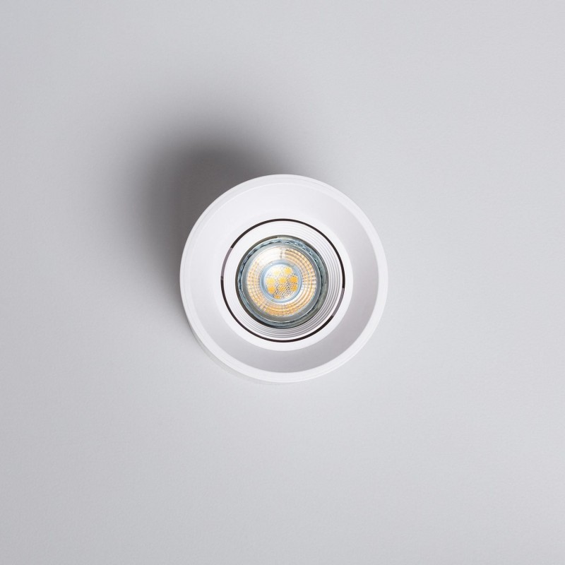 Fabricado en PC, el aplique de techo Space es duradero, ligero y resistente a la corrosión. Su acabado mate sin brillo incluye un anillo basculante que permite ajustar la dirección del haz de luz según las necesidades. Se instala fácilmente en superficies sin necesidad de realizar cortes.