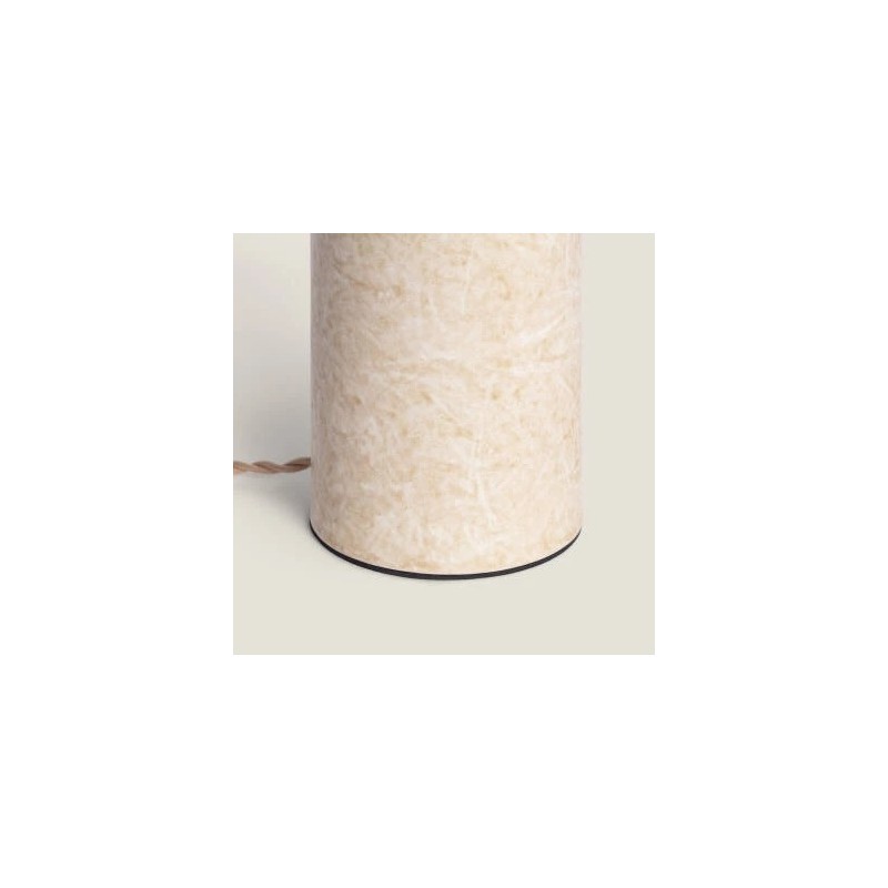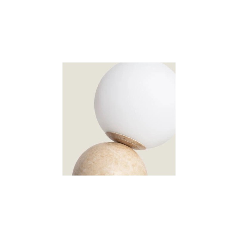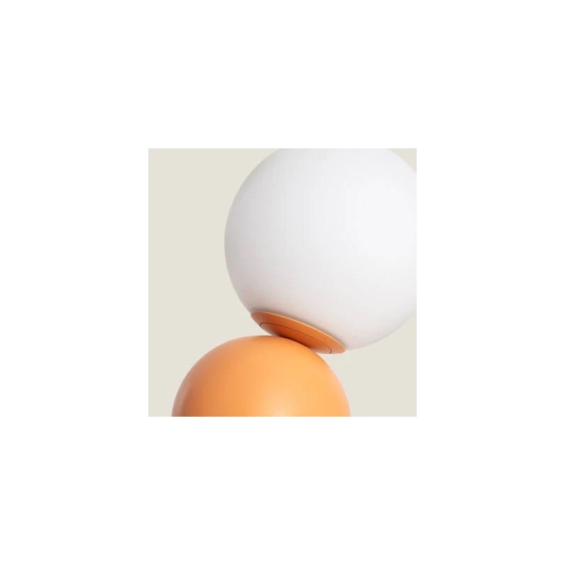 Esta lámpara cuenta con un cuerpo cilíndrico de metal, un material muy resistente a cambios de temperatura y agentes externos. Su pantalla es una tulipa esférica de cristal con acabado opal que dispersa la luz uniformemente, evitando el deslumbramiento.