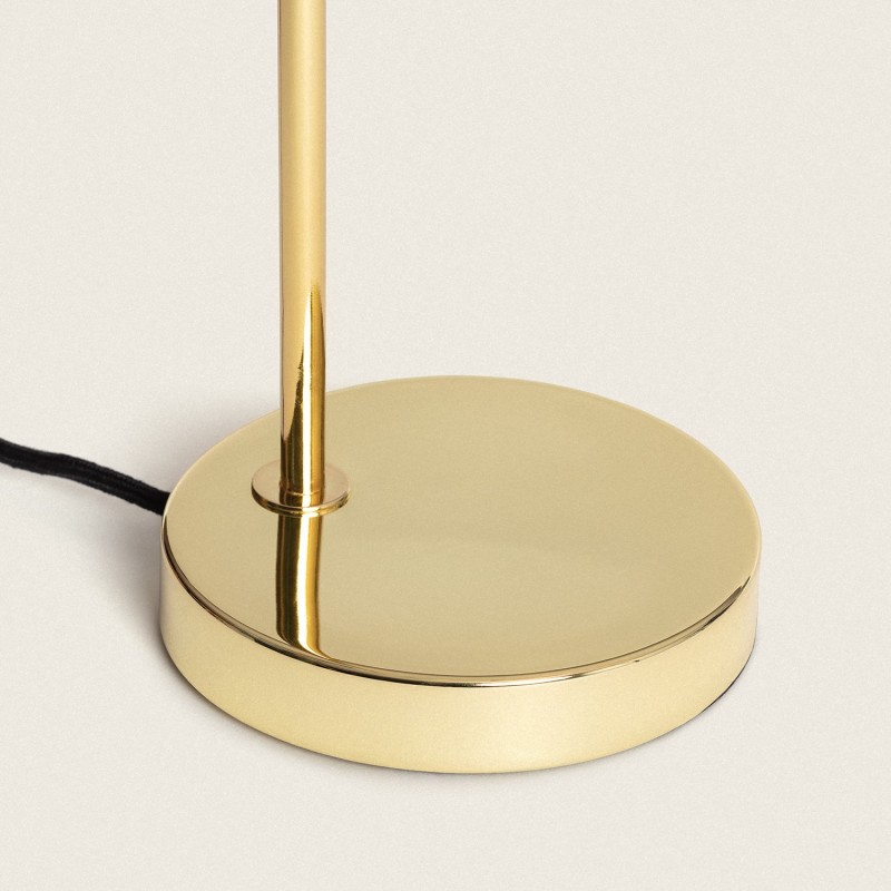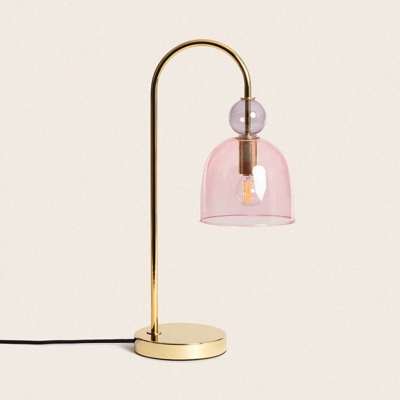 La lámpara de mesa metal y cristal Baudelaire es ideal para espacios con un estilo vintage. Está principalmente fabricada en cristal de color y metal dorado.