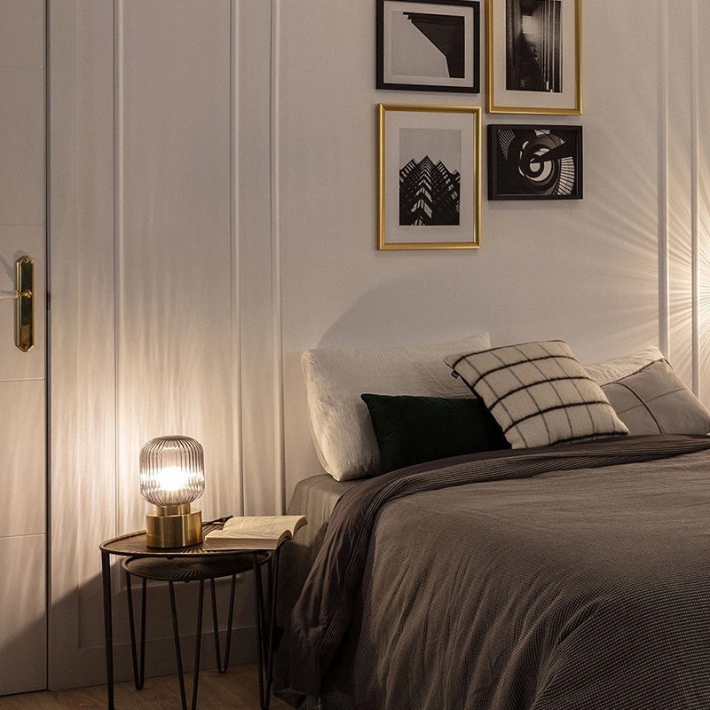 La lámpara de mesa metal y cristal Windsor es el accesorio de iluminación ideal para añadir un toque de elegancia y originalidad a cualquier espacio. Gracias a su diseño único de tulipa, se adapta perfectamente a ambientes clásicos, retro o vintage.