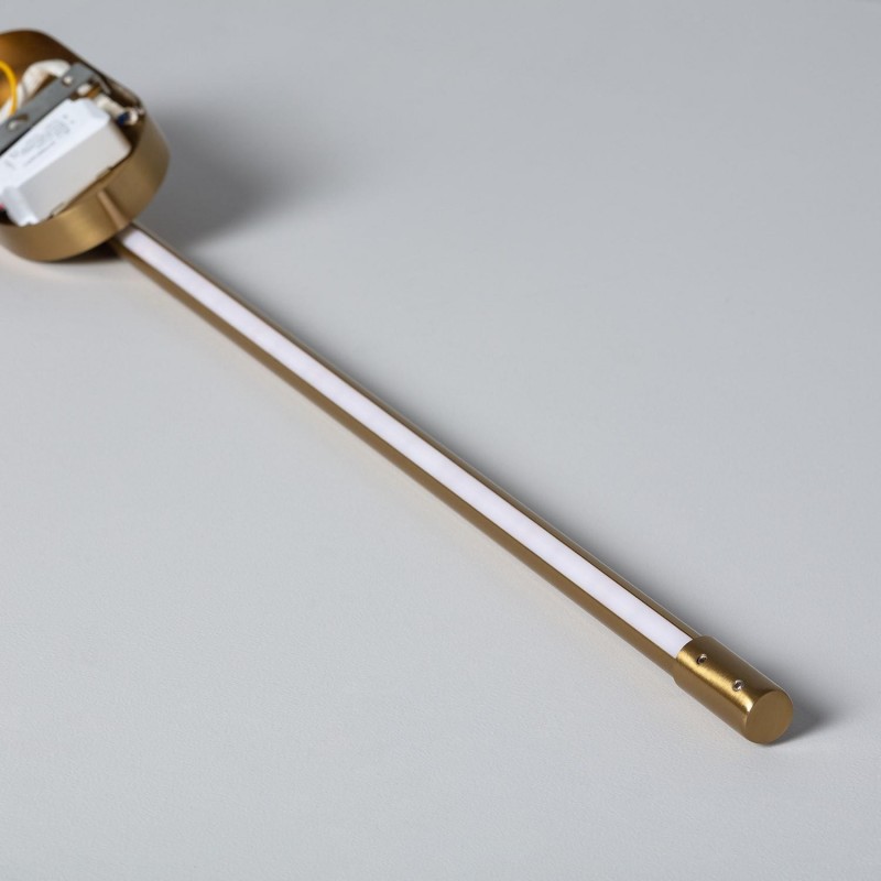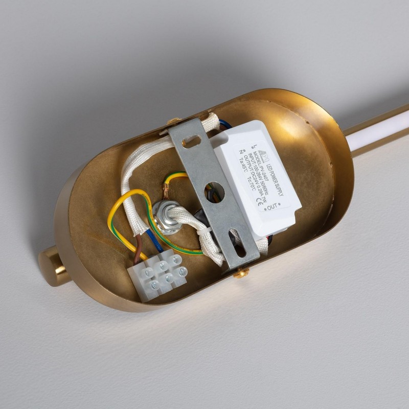 Este aplique de pared combina estilo y sofisticación en cualquier ambiente. Está fabricado en aluminio con un acabado dorado y cuenta con tecnología LED integrada. Es perfecto para salones, restaurantes y una amplia variedad de espacios, convirtiéndose en el centro de atención del lugar. La luz suave de esta lámpara crea un ambiente cálido y acogedor, ideal para cualquier ocasión.
