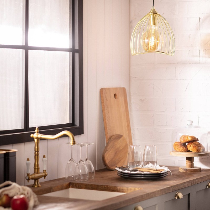 La lámpara colgante de metal Kibanda Bellús combina un diseño único y elegante con acabados de alta calidad. Este tipo de lámpara de diseño aporta un toque sofisticado que añade personalidad a cualquier espacio, haciéndolo único.