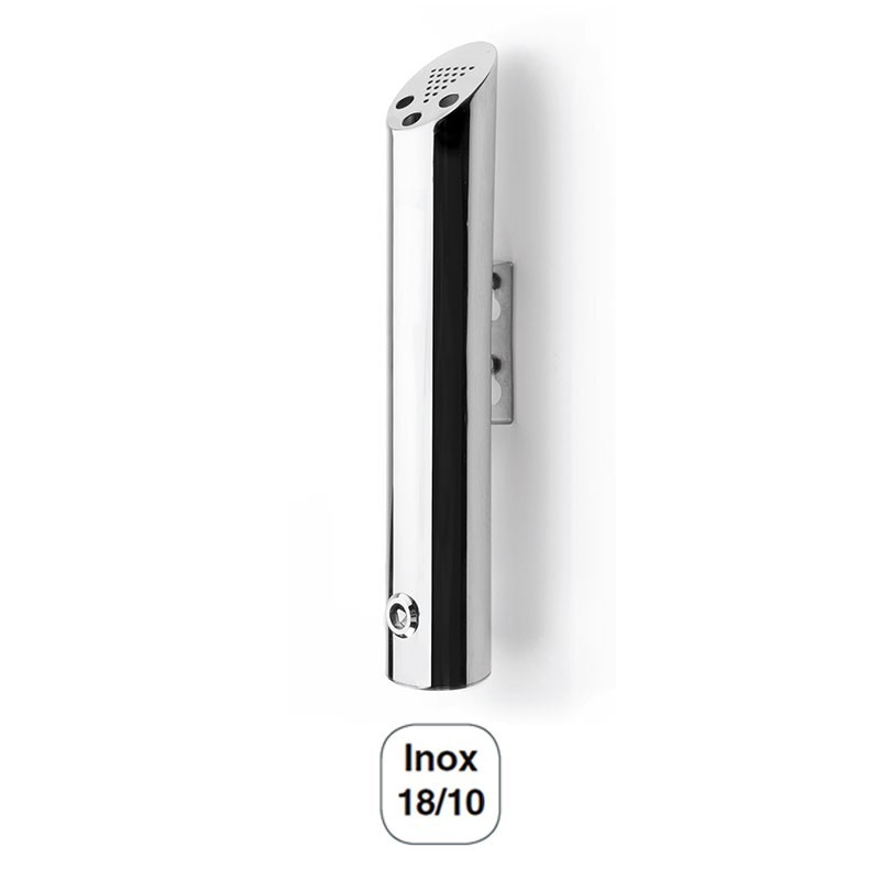 Cenicero tubular redondo para anclar a la pared de 8x46 cm fabricado en acero inoxidable 18/10 de alta calidad y excelente resistencia a la corrosión.