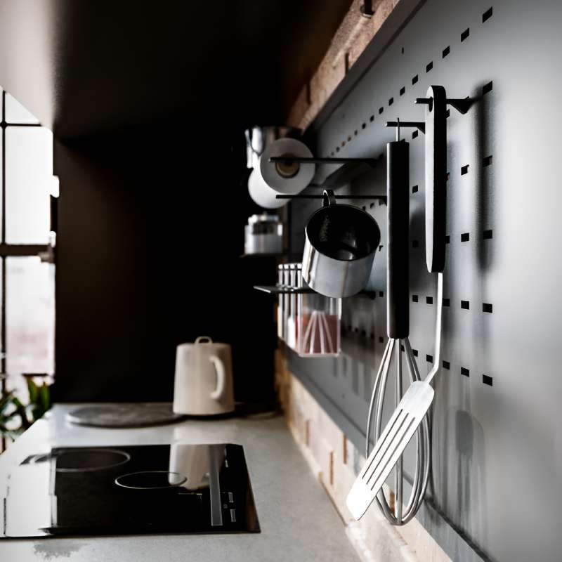 Agrega un gancho largo a tu sistema Linero Back y así poder colgar de forma organizada aquellos utensilios de uso cotidiano para tenerlos siempre a mano.