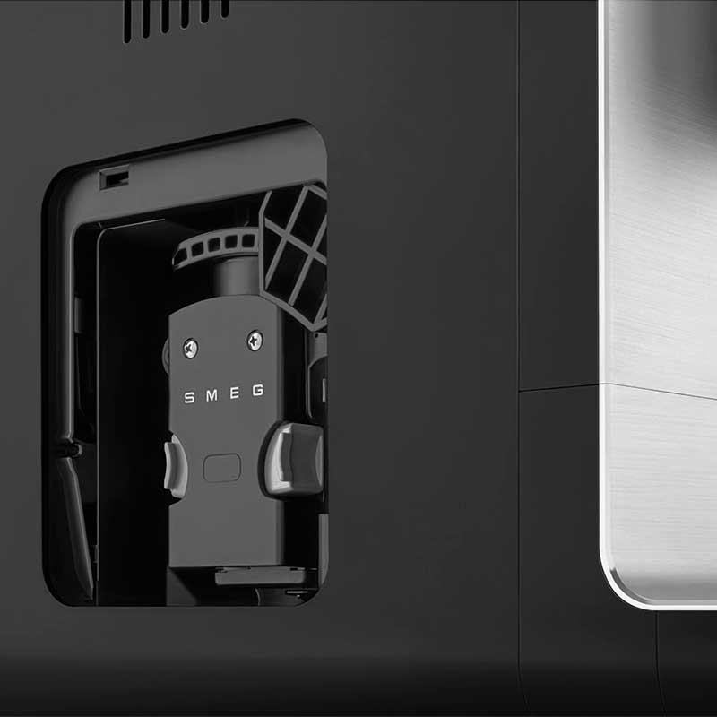 Cafetera espresso superautomática Smeg 50's Style en color negro mate con 19 bares de presión y sistema de calentamiento Thermoblock.