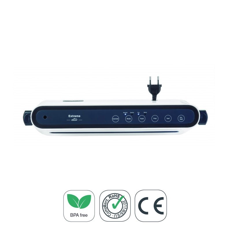 Máquina de vacío modelo Extreme de 110 W de potencia y bomba de vacío de 0,8 bar máx. ideal conservar alimentos, salsas o líquidos en bolsas o botes.