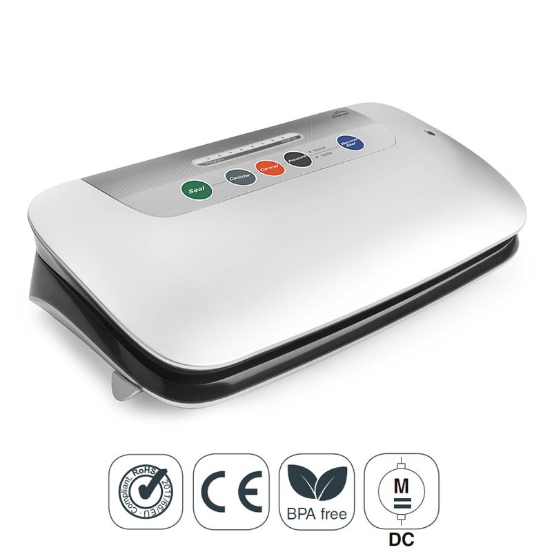 Máquina de vacío modelo Maxi de 110 W de potencia y bomba de vacío de 0,8 bar máx. ideal conservar alimentos, salsas o líquidos en bolsas o botes.