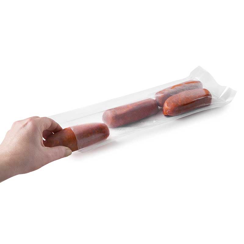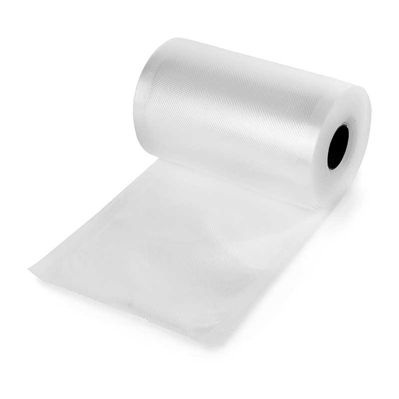 Bobina de tubo de plástico de 10 metros de longitud, 12 cm de ancho y 105 micras de espesor. Su tamaño es ideal para conservación de embutidos al vacío.