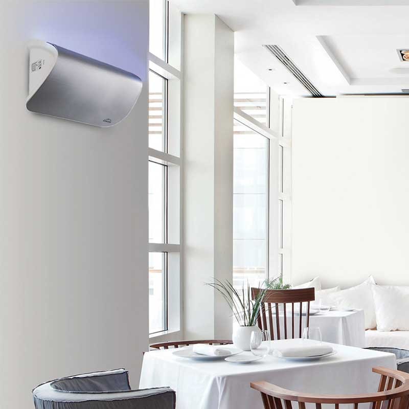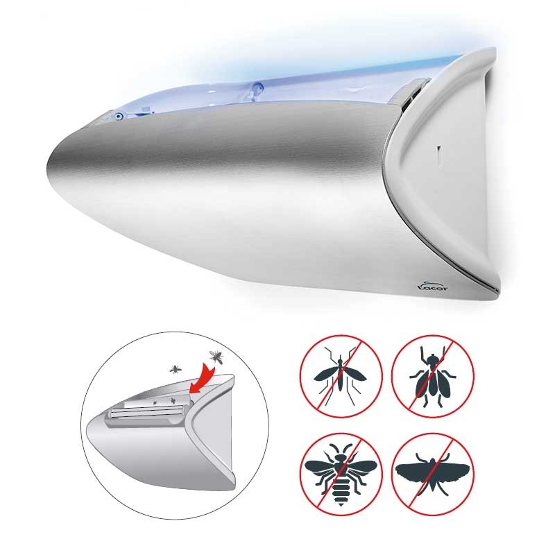 Mata mosquitos de pared con elegante diseño para dar un toque moderno a cualquier espacio. Ideal para hostelería, bares, restaurantes u hoteles.