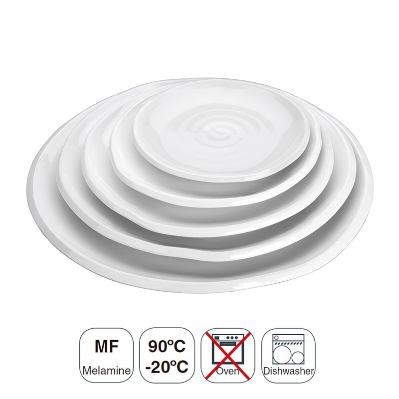 Plato redondo ondulado serie Melamina fabricado en resina sintética de gran resistencia y apta para lavavajillas. Disponible en varias medidas.