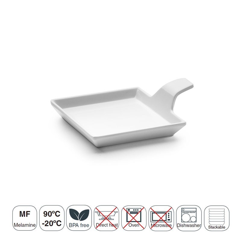 Bandeja Delicatessen Classic White de 9,5 x 9,5 cm fabricada en resina sintética de gran resistencia y apta para lavavajillas.