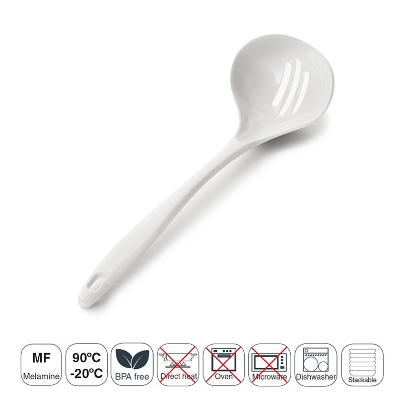 Cacillo perforado de 27 cm de longitud de la gama Classic White fabricada en resina sintética de gran resistencia y apta para lavavajillas.