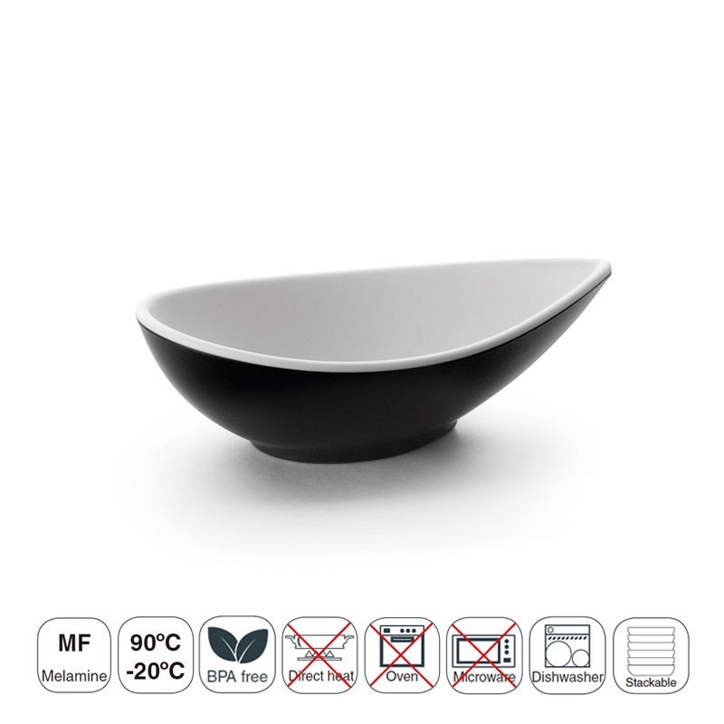 Bol de lágrima ovalado de la serie oriental Fuji fabricado en resina sintética de gran resistencia y apta para lavavajillas. Disponible en 2 medidas.