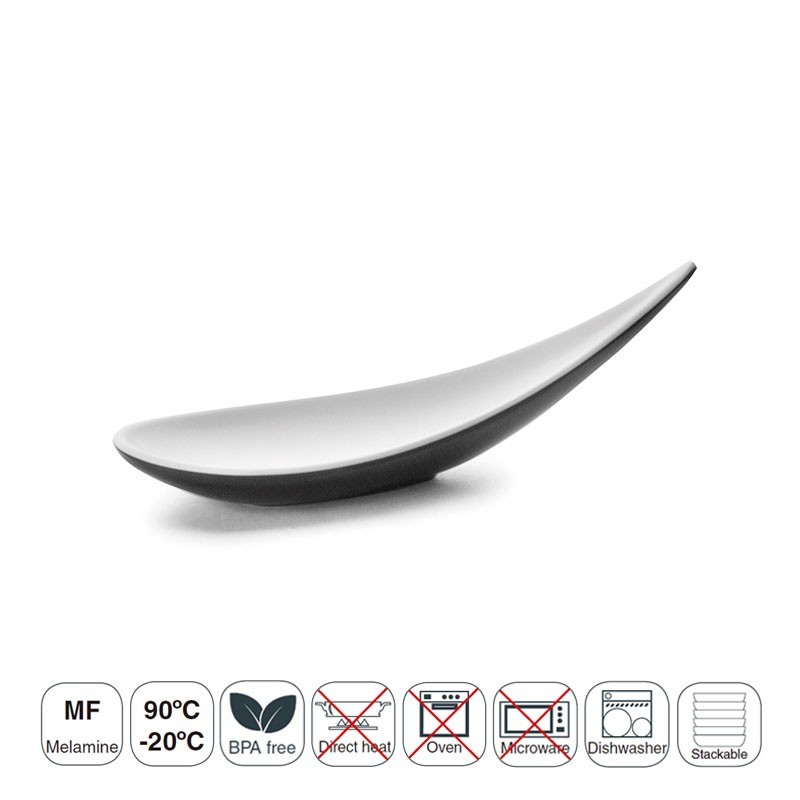 Cuchara de snack de la serie oriental Fuji fabricada en resina sintética de gran resistencia y apta para lavavajillas. Medidas: 14,5x14,5x4,5 cm
