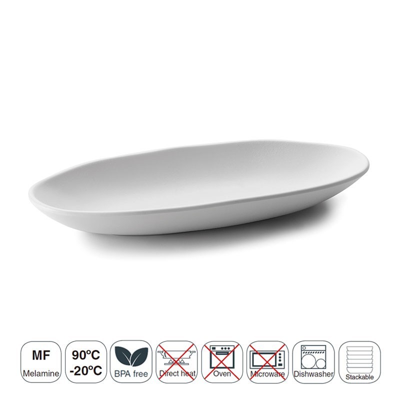 Fuente rectangular color blanco de la serie White & Black fabricada en resina sintética de gran resistencia y apta para lavavajillas. Medidas: 32x14x4 cm