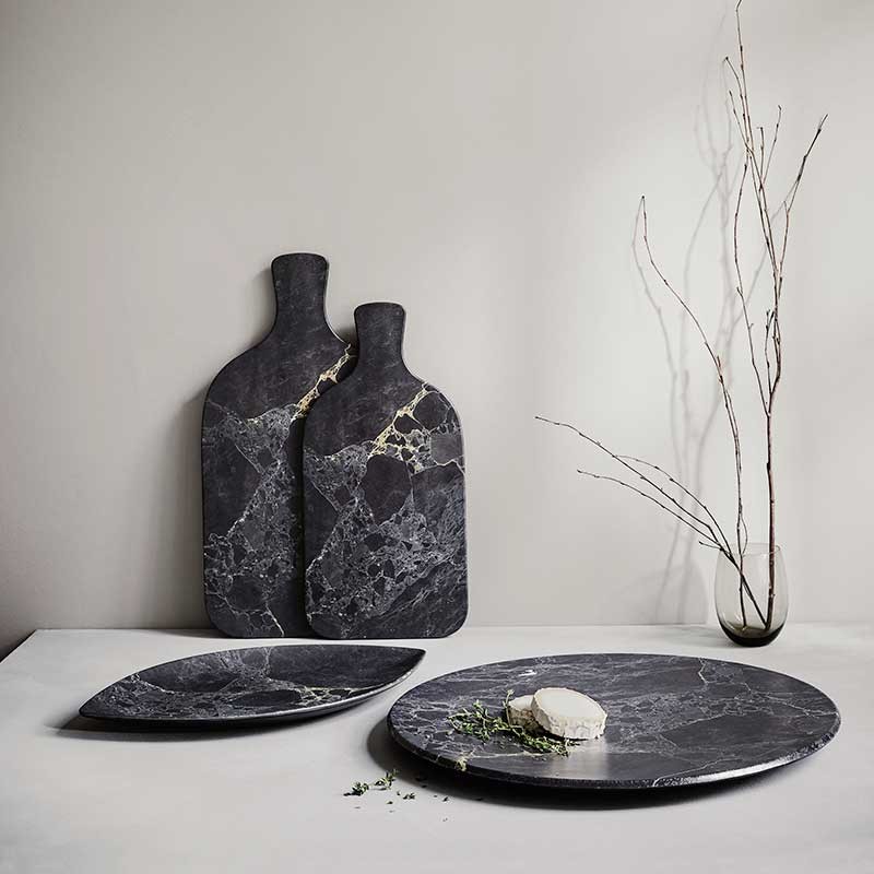 Bandeja rectangular modelo Stone fabricada en resina de alta calidad con aspecto elegante parecido al mármol.