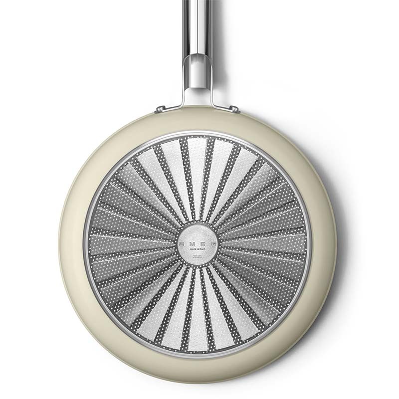 Sartén antiadherente Smeg 50's Style de 30 cm de diámetro, cuerpo de aluminio forjado y acabado exterior beige crema mate.