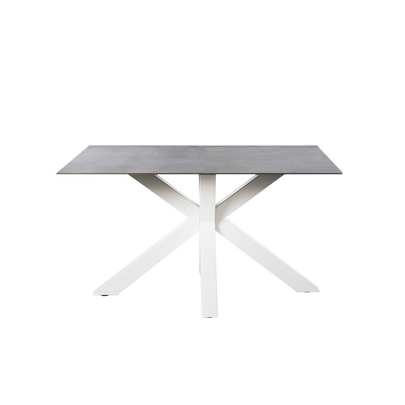 Con una tapa porcelánica con capa de cristal templado, la mesa JOYCE es resistente y fácil de limpiar, con un acabado que imita el mármol para un toque de elegancia. Sus patas gruesas de metal entrecruzadas le dan estabilidad y un aspecto artístico.