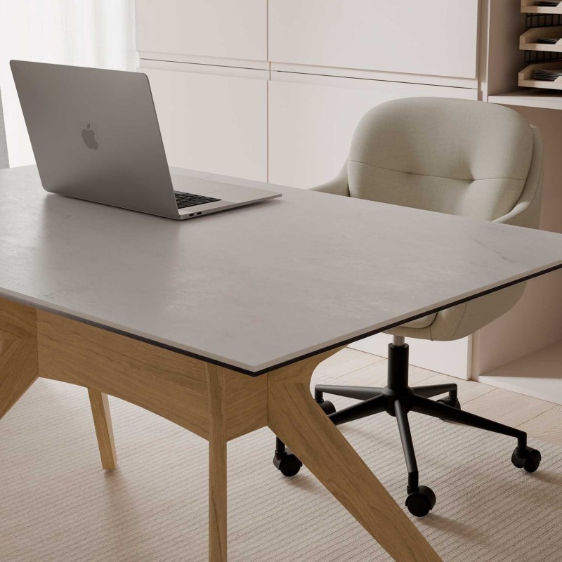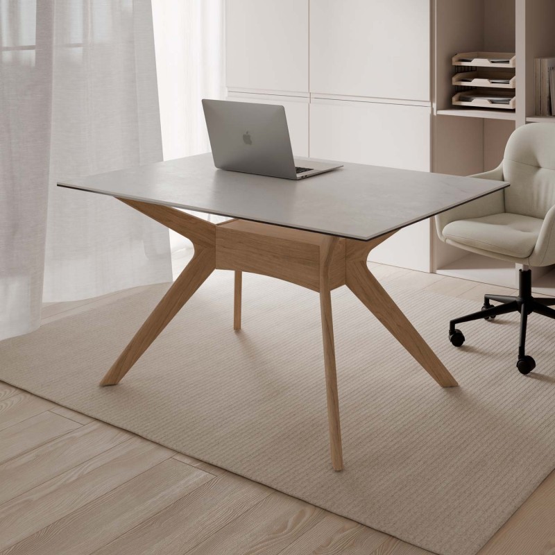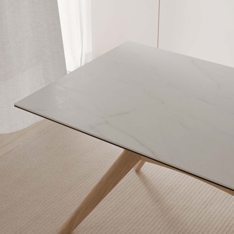 Descubre la elegante mesa fija ELOISE en blanco y roble, un mueble de alta calidad que combina a la perfección funcionalidad y estilo. Con su tapa de porcelánico de 5mm y cristal templado de 8mm, esta mesa es resistente al rayado, al calor, al fuego y a los productos químicos, garantizando durabilidad y fácil mantenimiento.