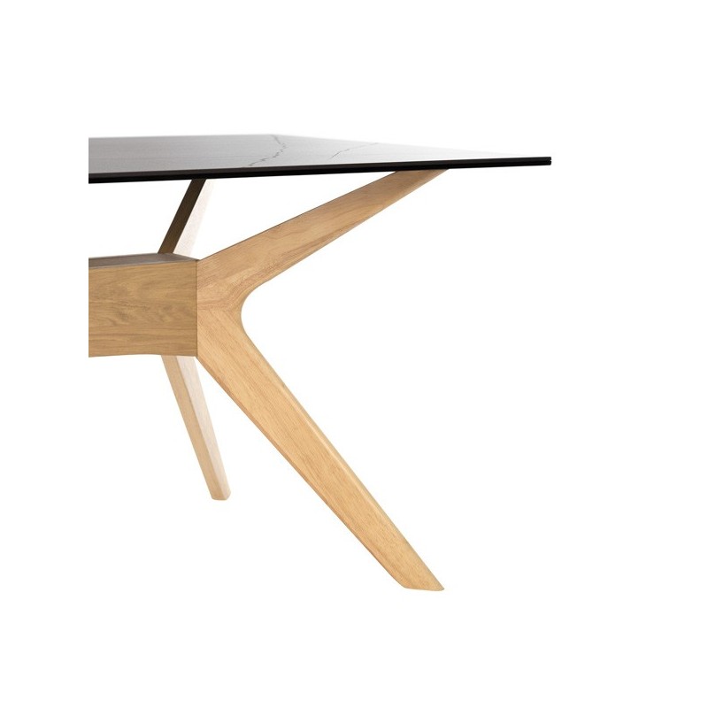 Descubre la elegancia y durabilidad de la mesa fija ELOISE en negro y roble. Con su tapa de porcelánico de 5mm y cristal templado de 8mm, esta mesa combina resistencia y estilo a la perfección. Las patas de madera añaden un toque de calidez a su diseño moderno y funcional.
