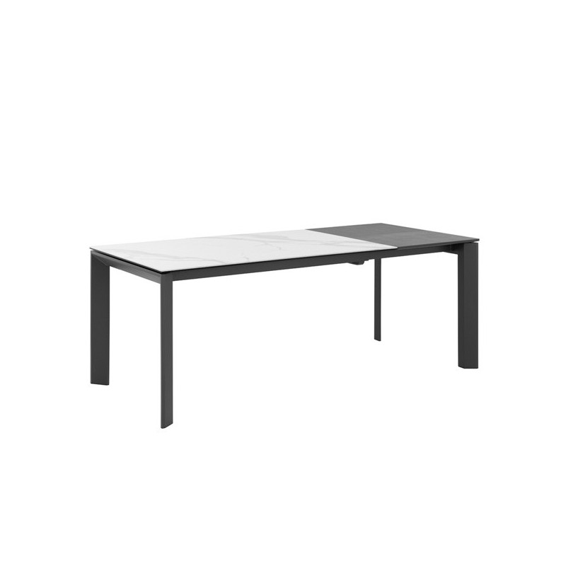 Descubre la elegante y funcional Mesa extensible TAMARA 160 en blanco/negro, un mueble de diseño moderno que combina a la perfección con cualquier estilo de decoración. Fabricada con materiales de alta calidad, esta mesa extensible de acero en color antracita y tapa de porcelánico mármol creta es la opción ideal para tu comedor o sala de estar.