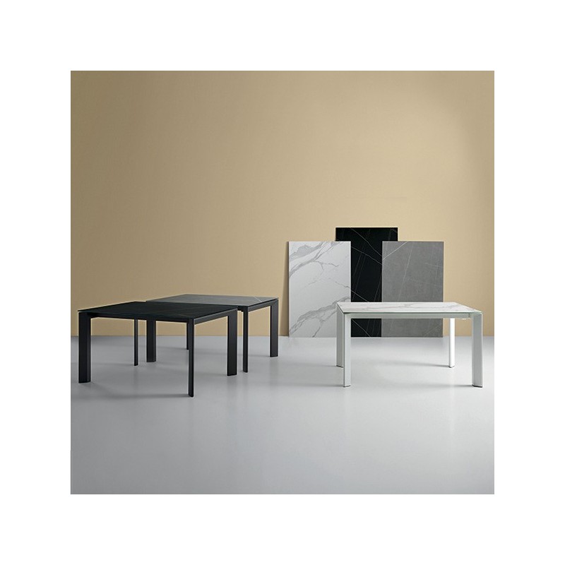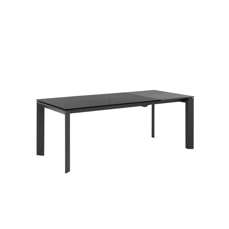Descubre la elegante y funcional Mesa extensible TAMARA 160 en color negro/negro, un mueble de diseño moderno que se adapta a tus necesidades de espacio. Fabricada con acero en color antracita y tapa de porcelánico negro sahara, esta mesa combina resistencia y estilo en un solo producto.