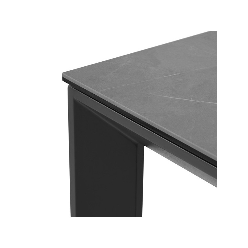 Descubre la elegante y funcional Mesa extensible TAMARA 160 en gris/negro, un mueble de diseño moderno que combina a la perfección el acero antracita con una tapa de porcelánico gris atenea y cristal templado. Sus medidas de 160x90 cm se amplían hasta los 240 cm, ofreciendo versatilidad y comodidad en tus reuniones y comidas.