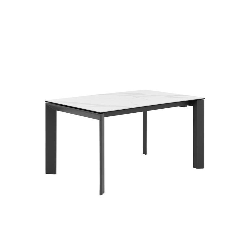 Descubre nuestra mesa extensible LISA 140 en blanco/negro, un mueble de alta calidad que combina funcionalidad y diseño. Fabricada con acero en color blanco y tapa de porcelánico mármol creta, esta mesa es perfecta para tu hogar.