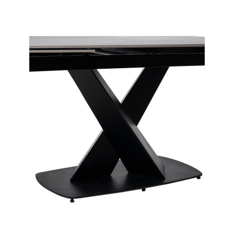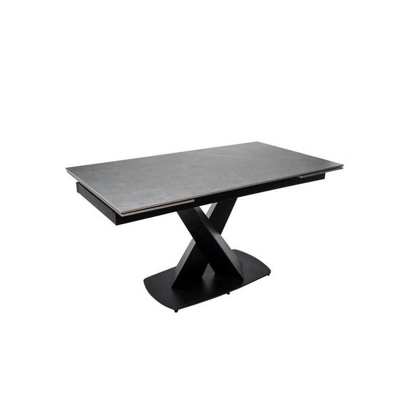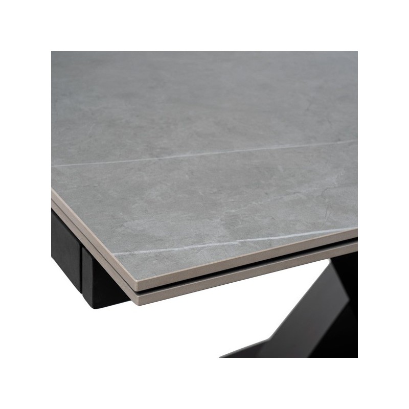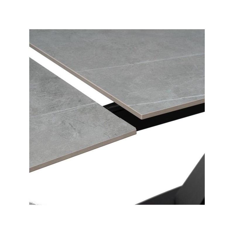 Mesa extensible VALERI 160 / 180 cm gris/negro: elegante, funcional y versátil. Porcelánico resistente, diseño moderno y ampliable a 200-240 cm / 220-260 cm.