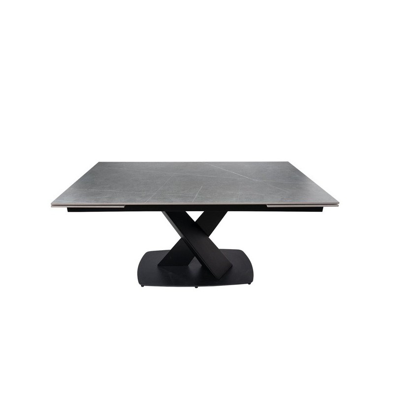 Descubre la elegante y funcional Mesa extensible VALERI gris/negro, un mueble de alta calidad que combina a la perfección el porcelánico macizo en color gris con unas patas de metal en negro. Esta mesa extensible cuenta con una tapa de 10mm de grosor, ideal para resistir el uso diario y lucir impecable en tu hogar.