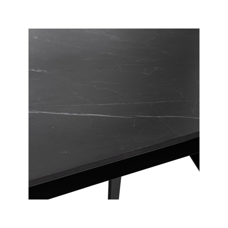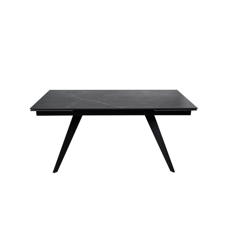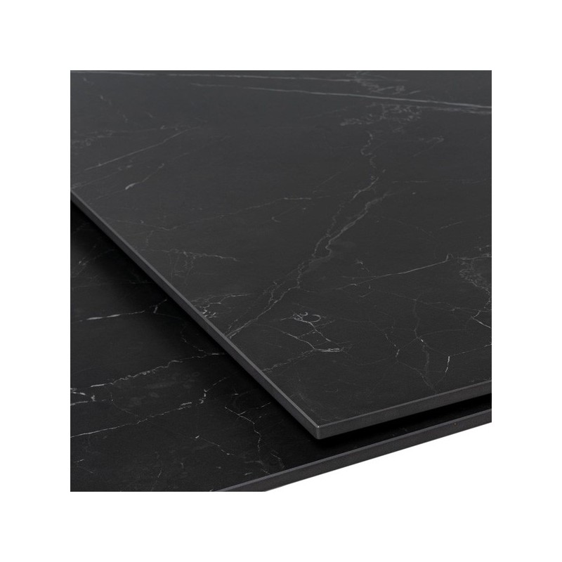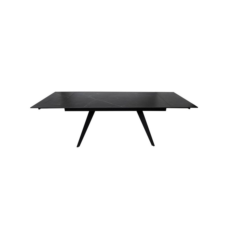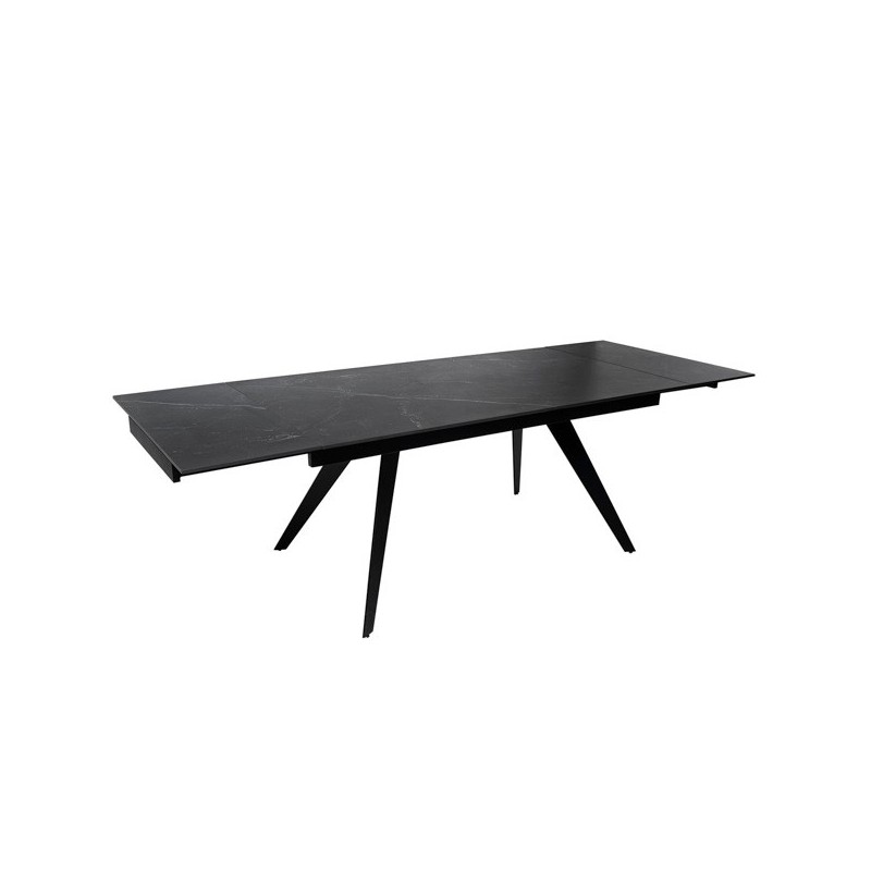 Descubre la elegancia y funcionalidad de la mesa extensible KELLY en color negro/negro. Esta mesa extensible cuenta con una tapa de 10mm de porcelánico macizo en color blanco, brindando durabilidad y estilo a tu espacio. Las patas de metal en color negro complementan perfectamente el diseño moderno de esta mesa.