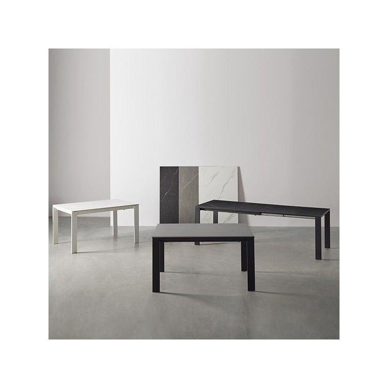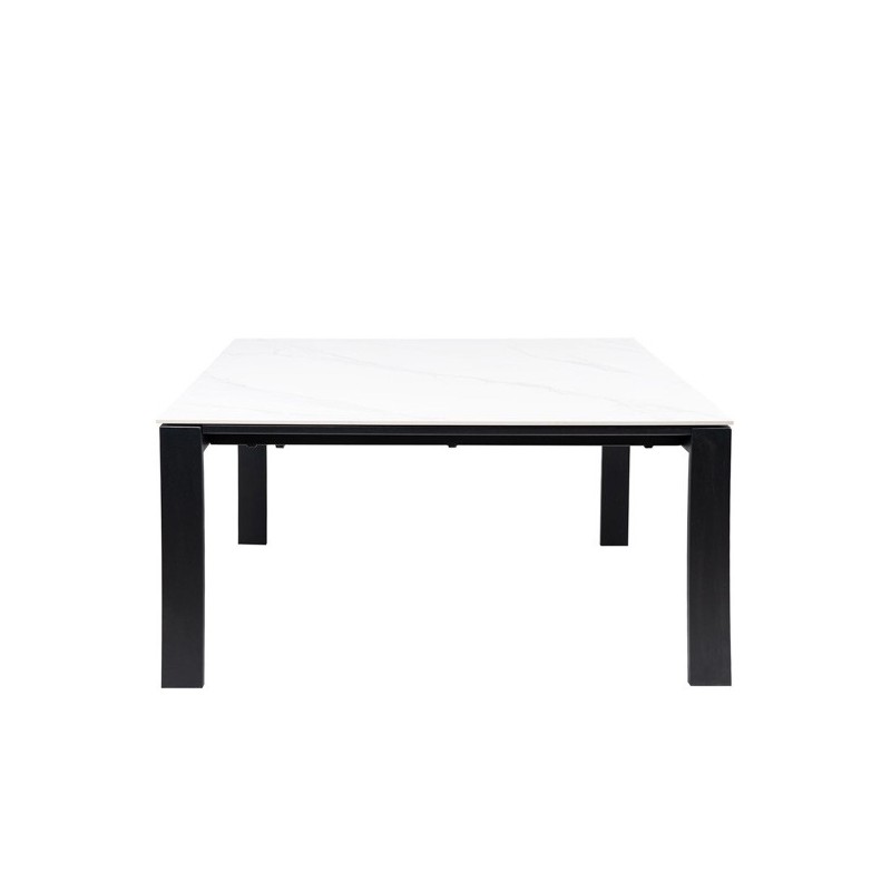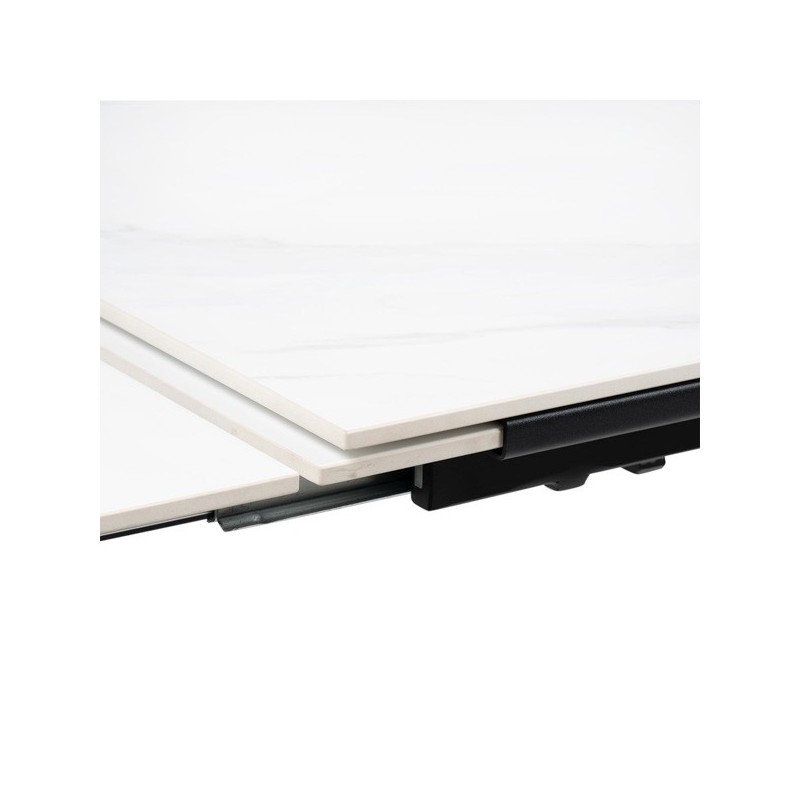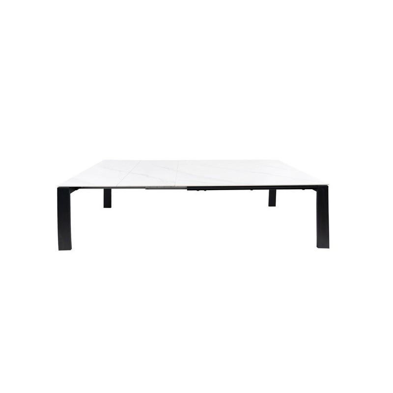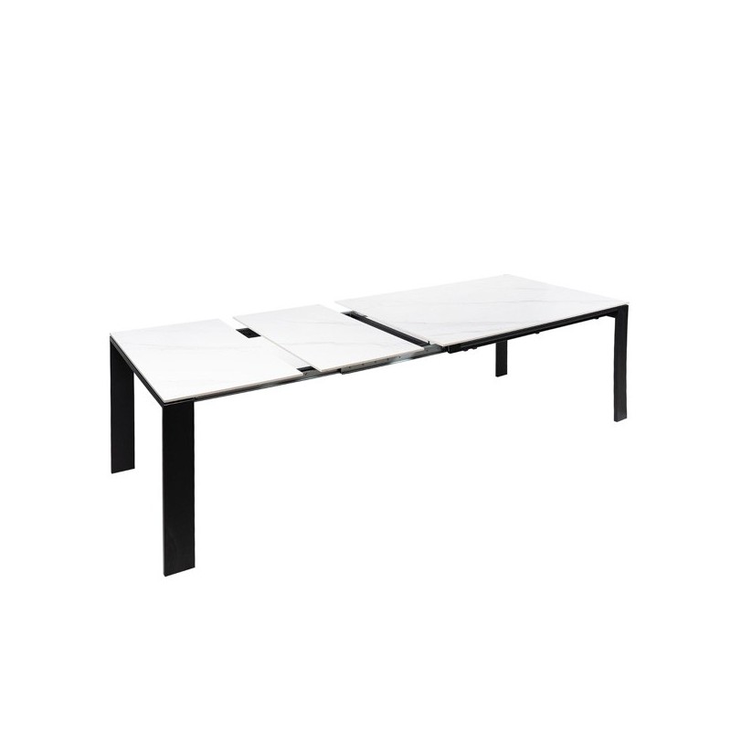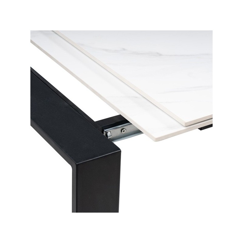 Descubre la elegancia y funcionalidad de la mesa extensible JANET 140 en blanco y negro. Esta mesa extensible de porcelánico macizo de 10mm de grosor es la combinación perfecta entre estilo y durabilidad. Las patas de metal en color negro le dan un toque moderno y sofisticado a cualquier espacio.