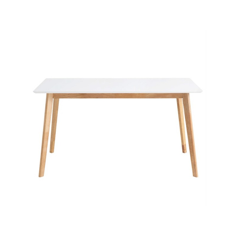 Descubre la mesa fija ALICE 120 blanco/roble, un elegante mueble de madera que aportará frescura y ligereza a tu cocina o comedor. Con un diseño sencillo de líneas rectas, esta mesa rectangular de 120x80cm destaca por sus patas de madera de caucho y su tapa lacada en blanco de 20mm de espesor.