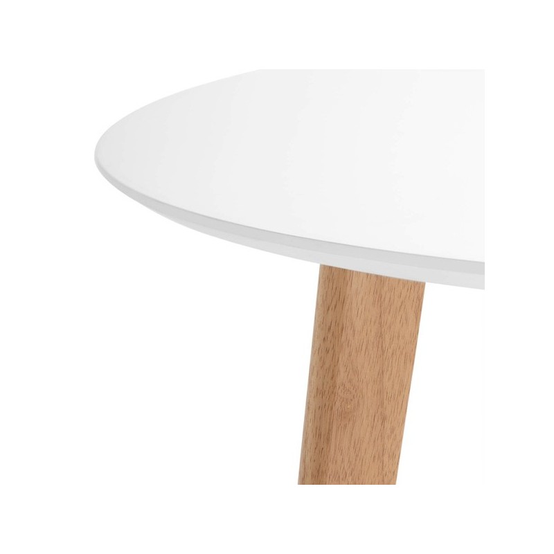 Descubre la mesa fija MONNA 100 blanco/roble, un elegante mueble de madera que aportará frescura y modernidad a tu cocina o comedor. Con una forma redonda de 100cm de diámetro, esta mesa destaca por sus patas fabricadas en madera de caucho y su tapa fija de 18mm de espesor, garantizando durabilidad y estilo en un solo producto.