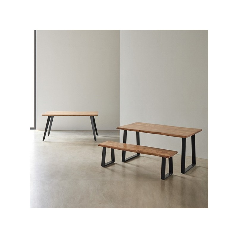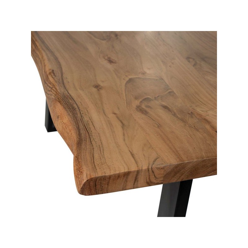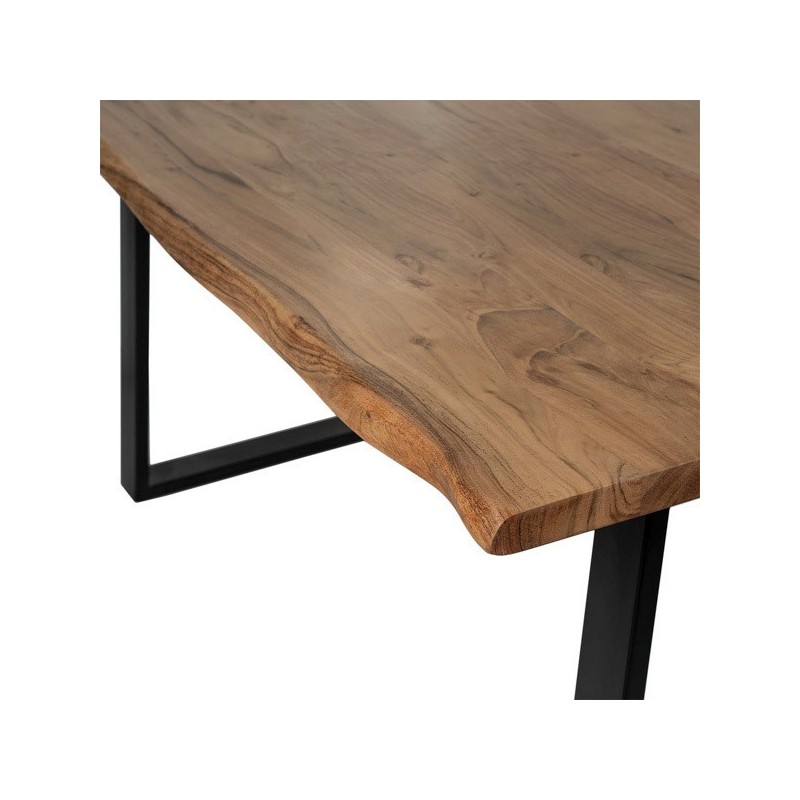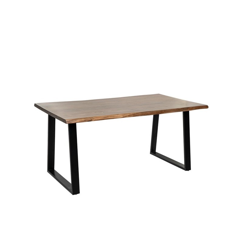 Mesa fija LABAN elegante y duradera, combina madera de acacia y metal negro. Ideal para comidas en familia, destaca por su diseño moderno.