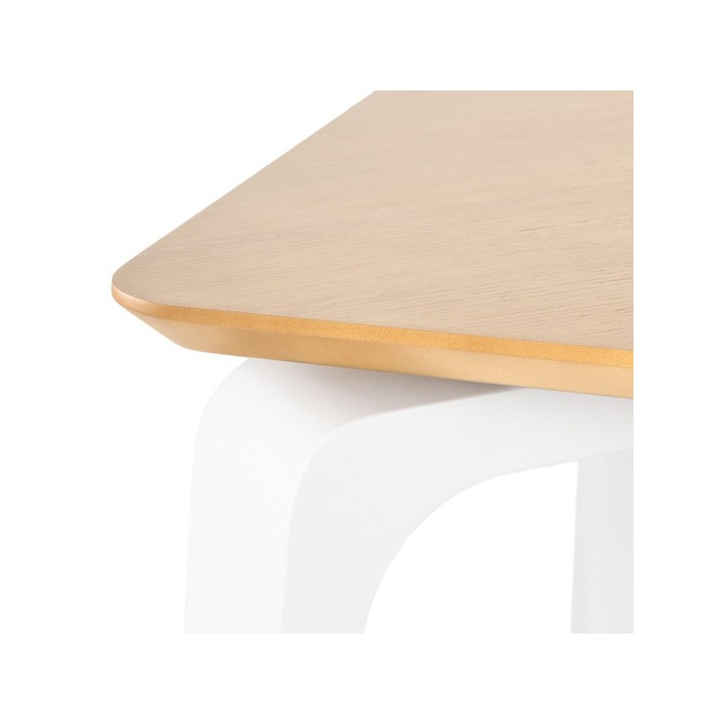 Con una superficie de chapa de roble y patas de madera de hevea barnizadas en blanco, la mesa STACY destaca por su aspecto limpio y contemporáneo. Su diseño versátil permite adaptarse a diferentes estilos de decoración, desde el escandinavo hasta el industrial, convirtiéndola en un elemento clave para tu espacio.