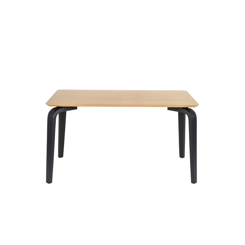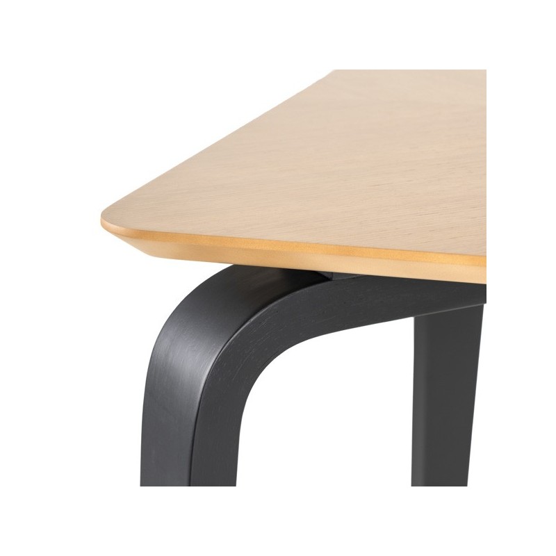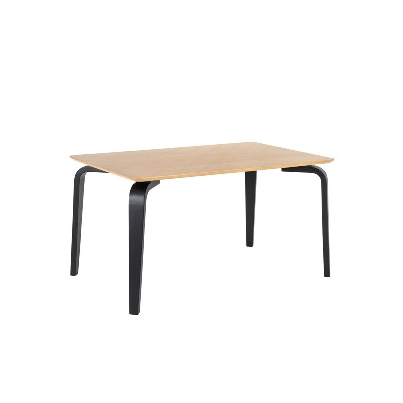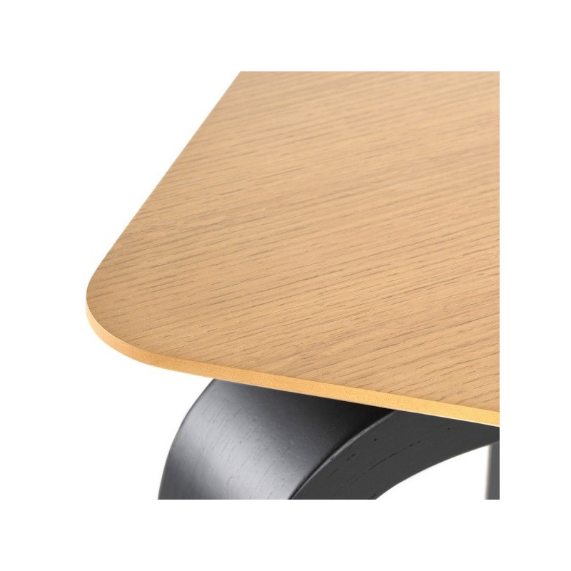 Descubre la mesa fija STACY 140 en roble/negro, un mueble de diseño único y sofisticado que garantiza estabilidad en cualquier espacio. Las patas ligeramente curvadas añaden un toque distintivo a esta pieza, mientras que la chapa de roble y las patas de madera de hevea barnizadas en negro le confieren un aspecto elegante y contemporáneo.