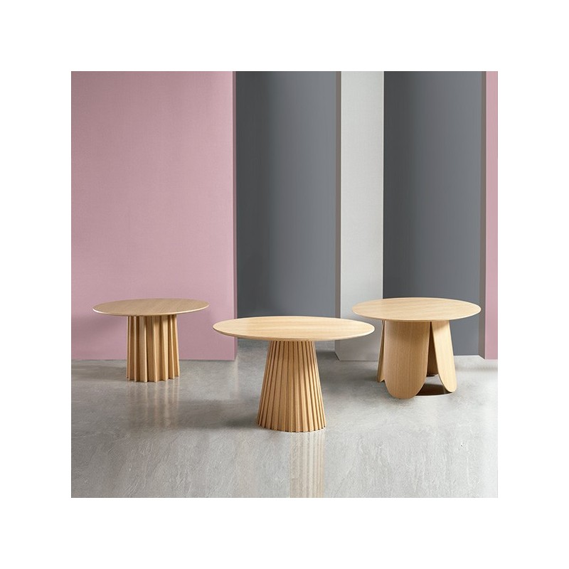Descubre la elegante mesa FATIMA de MADERA FIJAS: diseño moderno con tapa de chapa de roble y patas del mismo material. Calidad, resistencia y estilo.