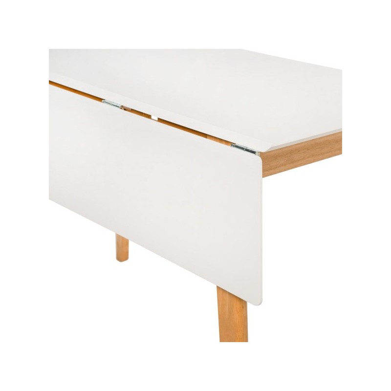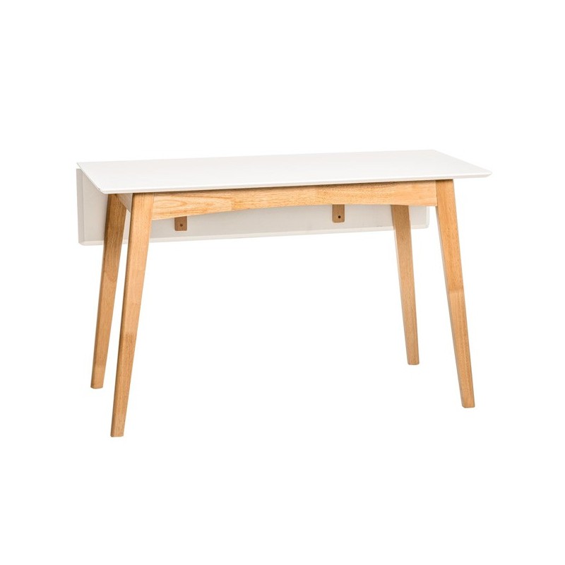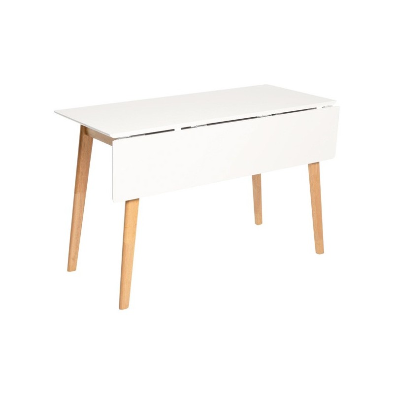 Descubre la versatilidad y elegancia de la mesa extensible TORI blanco/roble, un mueble funcional y moderno que se adapta a tus necesidades. Con un diseño único y sofisticado, esta mesa abatible de 120x50 cm (75 cm de altura) destaca por su tapa de MDF lacada en blanco y sus patas de madera de hevea, que aportan durabilidad y estilo a cualquier espacio.