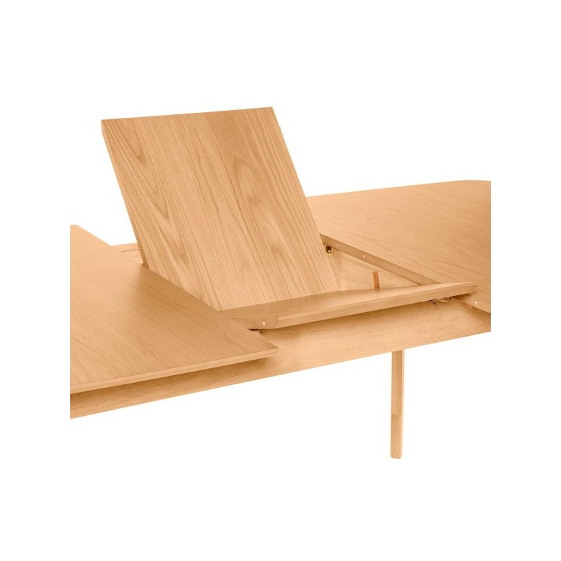 No pierdas la oportunidad de hacerte con esta mesa extensible de diseño único, que combina la belleza de la madera de roble con la practicidad de su extensible. ¡Hazte con la mesa ENMA 120 roble y disfruta de reuniones inolvidables con familia y amigos!