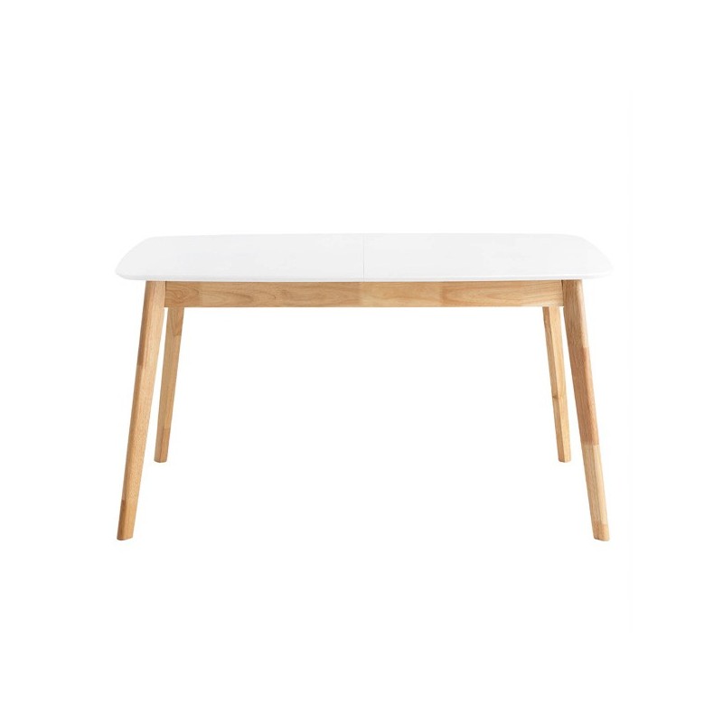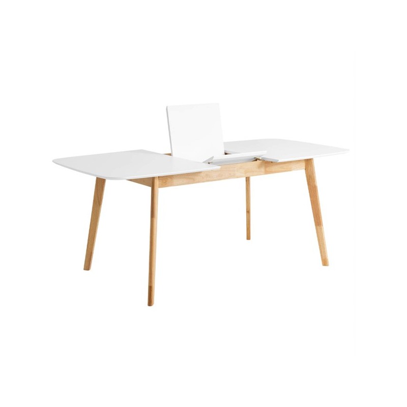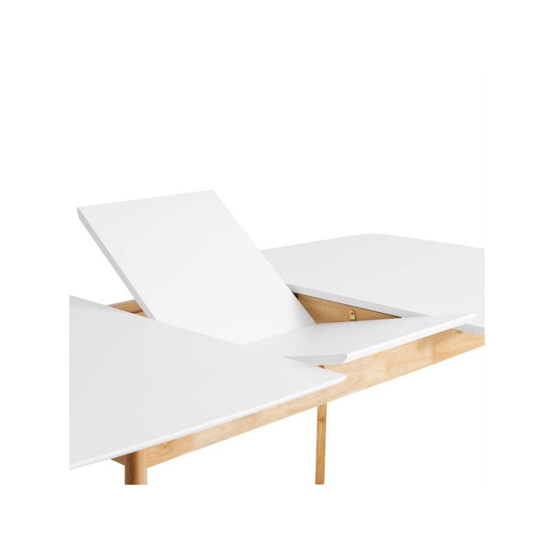 Descubre la versatilidad y elegancia de la mesa extensible ENMA 120 blanco/roble, un mueble funcional y moderno que se adapta a cualquier espacio. Con sus medidas de 120x80 cm, esta mesa de comedor es perfecta para cocinas y comedores de estilo nórdico, aportando un toque de frescura y luminosidad gracias a su tapa lacada en blanco y patas de madera de roble.