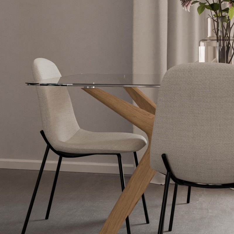 Mesa fija DELLA de cristal y roble: elegante, sofisticada y funcional. Ideal para dar un toque de originalidad a tu hogar.