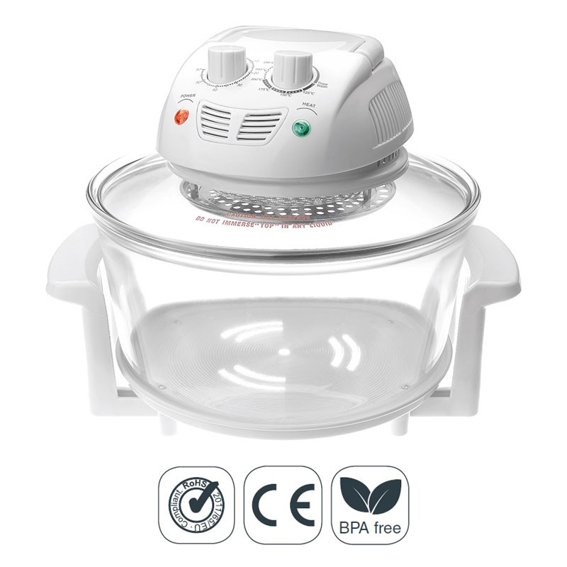 Horno halógeno de convección de 1400W con set de accesorios incluidos. Ideal para cocinar sano ya que no necesita aceite.