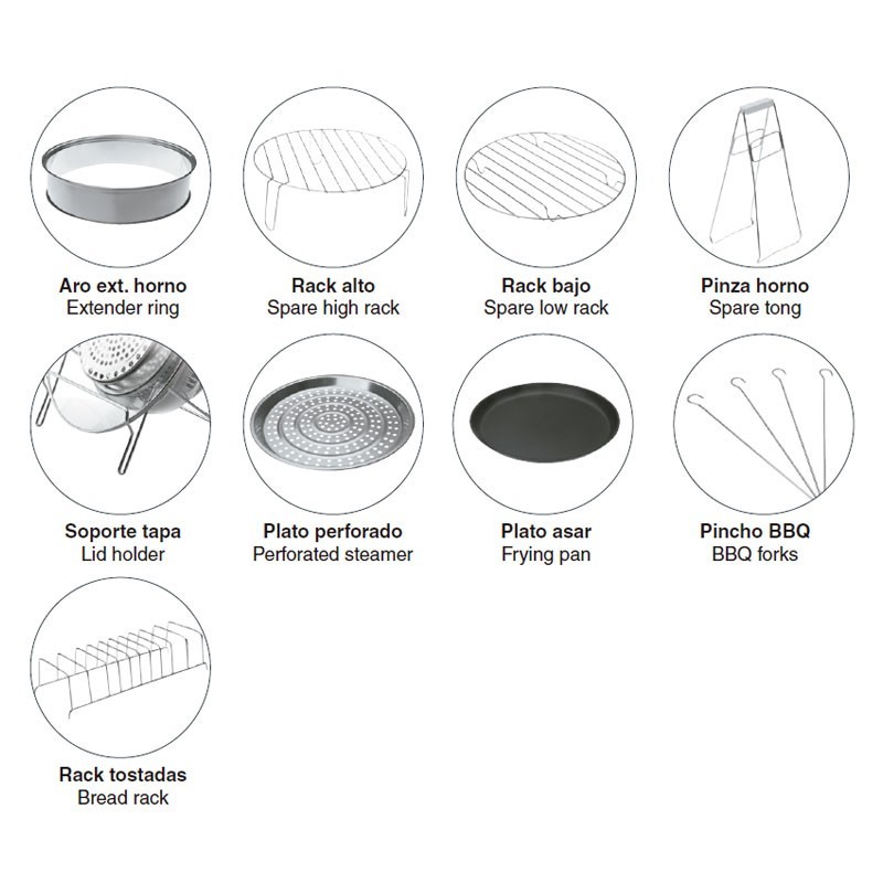 Además se puede utilizar la tapa de forma independiente para otros recipientes. Gracias a su termostato (20-250ºC) y su temporizador programable, no querrás volver a cocinar con otro horno.